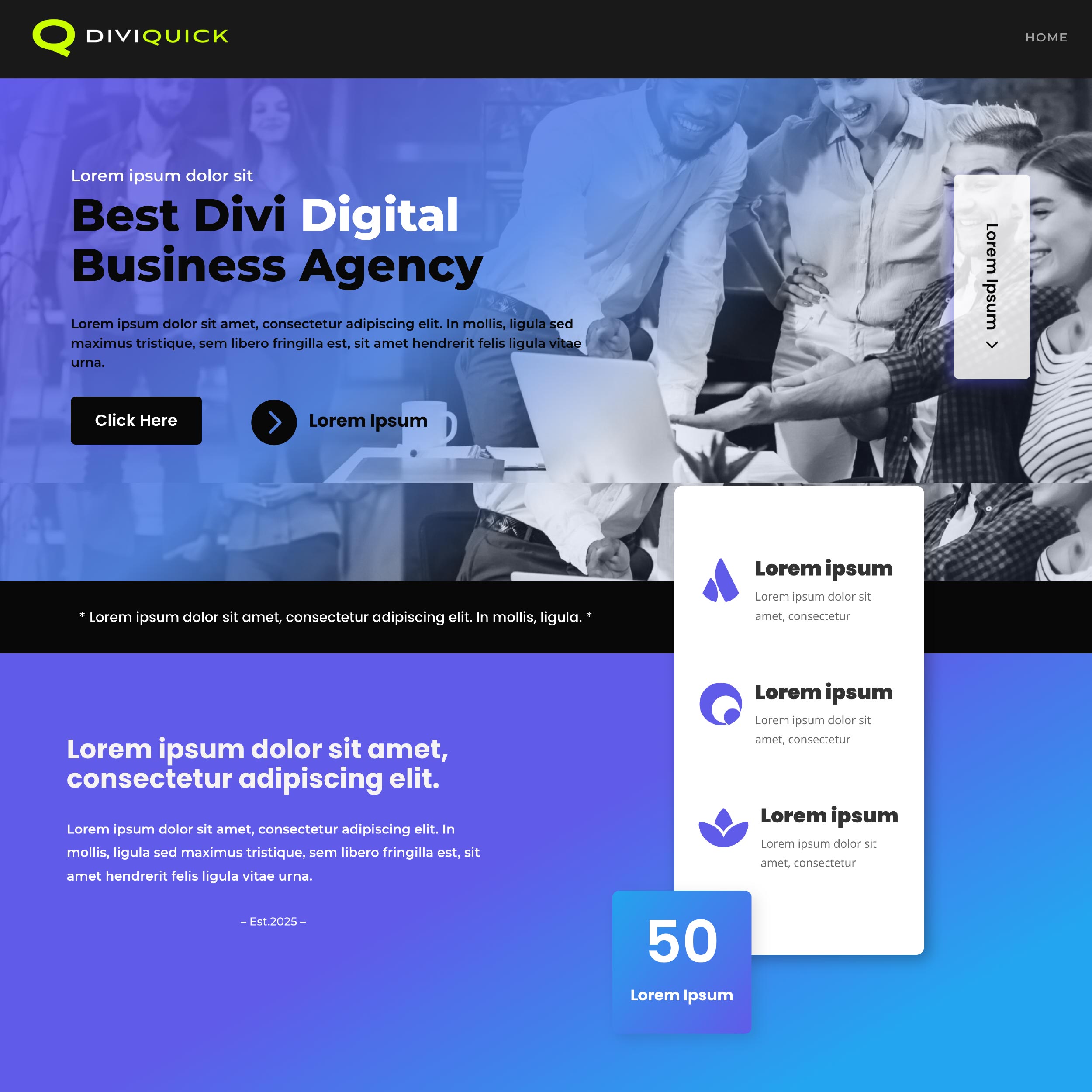 Import ready Divi JSON layouts. Launch a quick website in minutes.